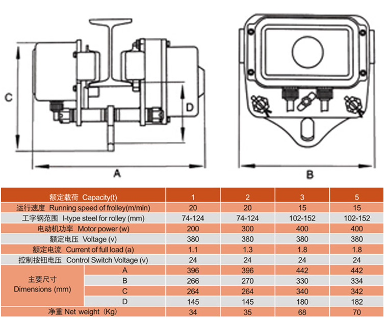 DC-A單速電動小車可搭配環(huán)鏈電動葫蘆使用,也可單獨使用。